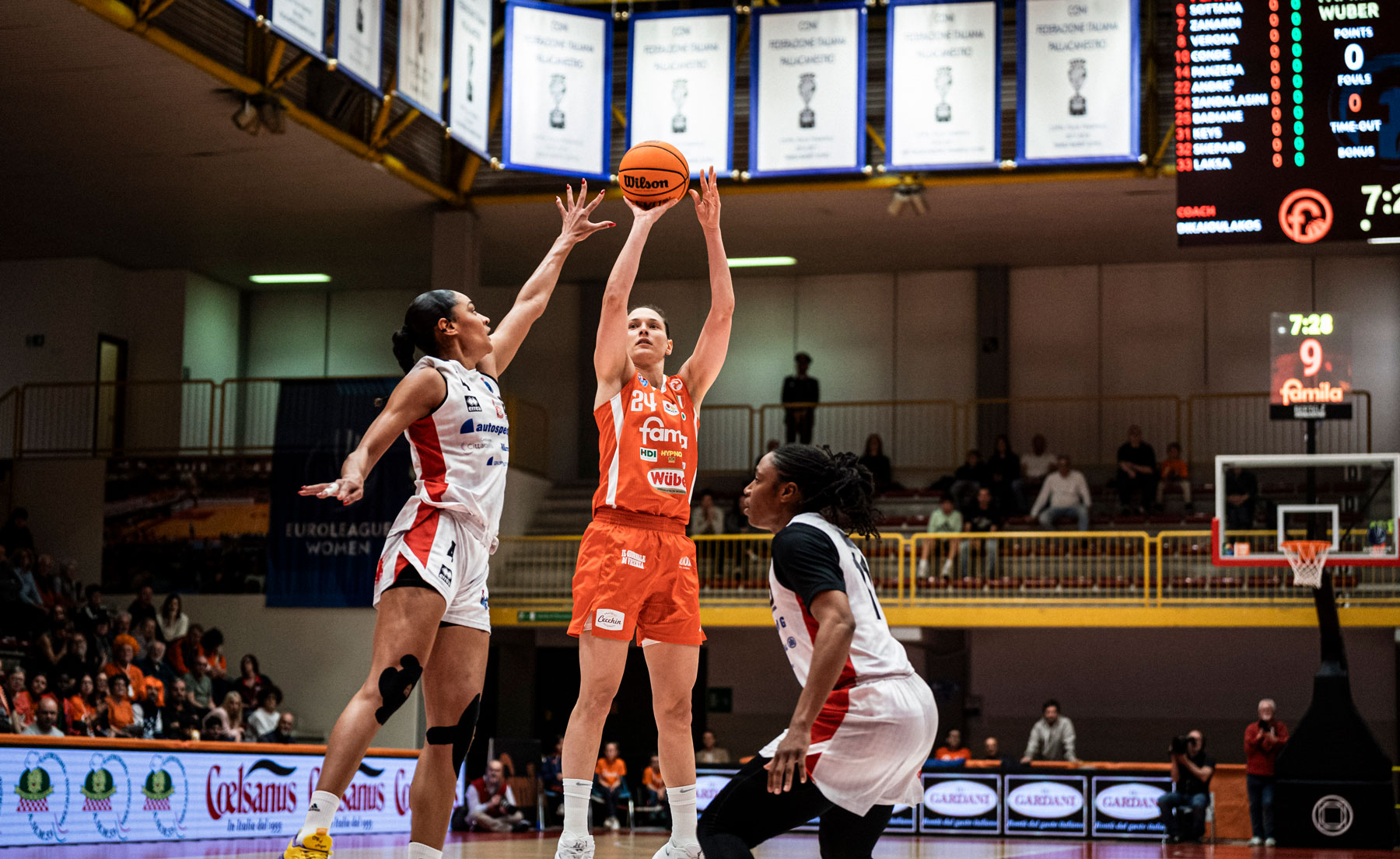 Il Famila Wuber è pronto per gara 2 delle semifinali playoff con l’obiettivo di staccare il pass per la 16° finale scudetto consecutiva della sua storia. A frapporsi a questo traguardo l’Autosped Derthona, quarta forza della Serie A1 che, davanti al pubblico amico (si gioca alle 20.30 alla Nova Arena di Tortona), proverà a portare la serie alla decisiva gara 3. Le due formazioni si trovano di fronte per la quinta volta in stagione (sesta se consideriamo anche la preseason) e a gennaio – proprio alla Nova Arena – si sono contese la Coppa Italia, vinta da Sottana e compagne come tutti i confronti stagionali. Non inganni questo dato, però, perché la BCC è squadra temibile che ha sempre saputo mettere in difficoltà ogni avversaria affrontata e che anche in gara 1, dopo un avvio incerto, ha dato prova del suo valore. Martedì, infatti, le campionesse d’Italia hanno indirizzato la contesa nei primi venti minuti guadagnando quasi 20 punti di vantaggio che le ospiti non sono mai riuscite a recuperare pur arrivando ad un pericoloso -8 ad inizio ultimo periodo.