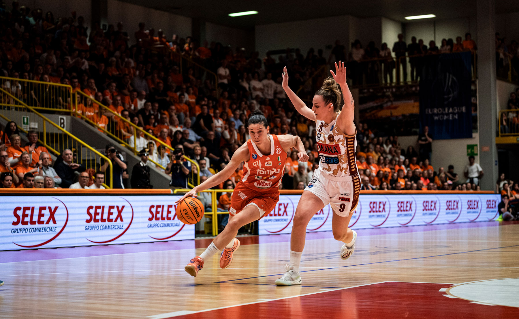 Verona apre con il jumper ma Charles in contropiede punisce dall’angolo e Dojkic si guadagna tre tiri liberi per il fallo di Shepard che aveva segnato il canestro precedente proprio sulla croata: 59-54. Al 6’ possibile sliding door della partita: Charles vede la sua tripla letteralmente sputata dal ferro e Laksa dall’altra parte raccoglie lo scarico visionario di Conde per bruciare la retina e successivamente appoggiare il nuovo +12. Nervi tesi tra Holmes e Keys ma a farne le spese è Laksa con il quarto fallo personale su Dojkic mentre Pasa trova una tripla di tabella rigenerante. Umana che continua a difendere fortissimo senza spendere fallo, cosa che non fa invece il Famila che manda in lunetta a ripetizione le avversarie che con Charles tornano a -4. Come nelle migliori favole, la palla decisiva passa proprio per le mani di Sottana che si guadagna i liberi che decidono la partita perché quelli di Verona servono solo a suggellare il completamento dell’impresa del Famila: 70-64 e il PalaRomare scoppia in un urlo liberatorio di enorme gioia.