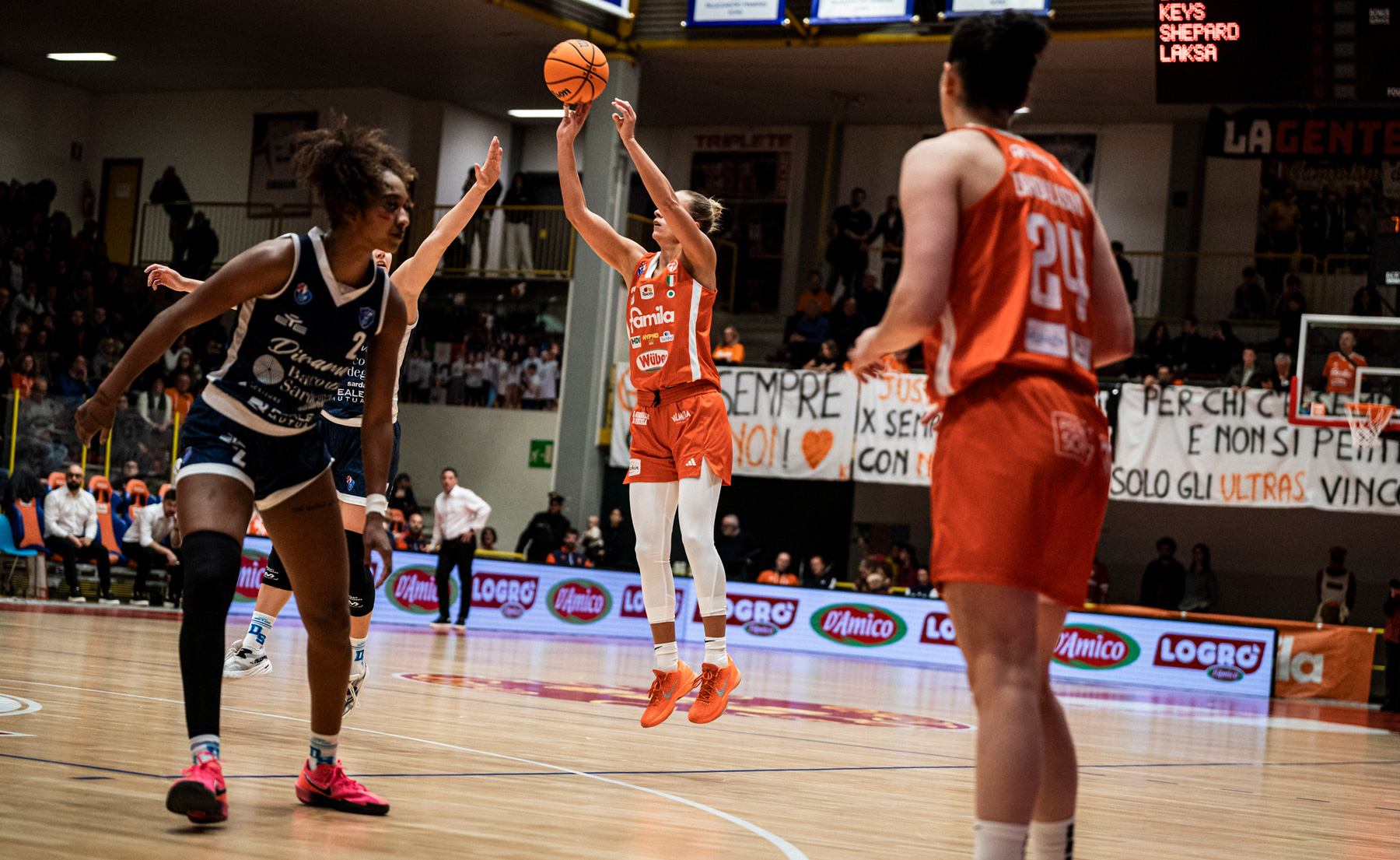 Non è mai piacevole dirlo ma un po’ tutto il secondo tempo lo si può definire di garbage time nel quale le squadre sono consapevoli che la partita è già indirizzata e giocano per migliorare i propri meccanismi: in particolare coach LaPena decide di provare una soluzione con 4 esterne ed una sola lunga dando anche tanto spazio a Zanardi e Panzera che si stanno ritagliando un ruolo sempre più importante nelle rotazioni dell’allenatore spagnolo. Finisce con un perentorio 94-51 in un PalaRomare festante di bambini e famiglie ed il settimo successo consecutivo in campionato per un Famila che consolida così la leadership in classifica.