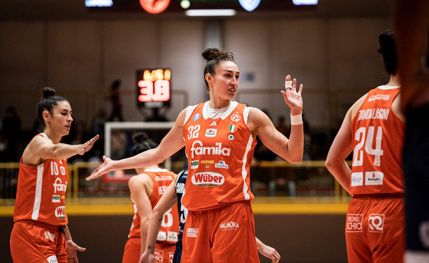 Famila Wuber Schio:Zanardi 6, Verona 5, Conde 14, Panzera 7, Andrè ne, Zandalasini 11, Badiane 12, Keys 2, Shepard 21, Laksa 16
