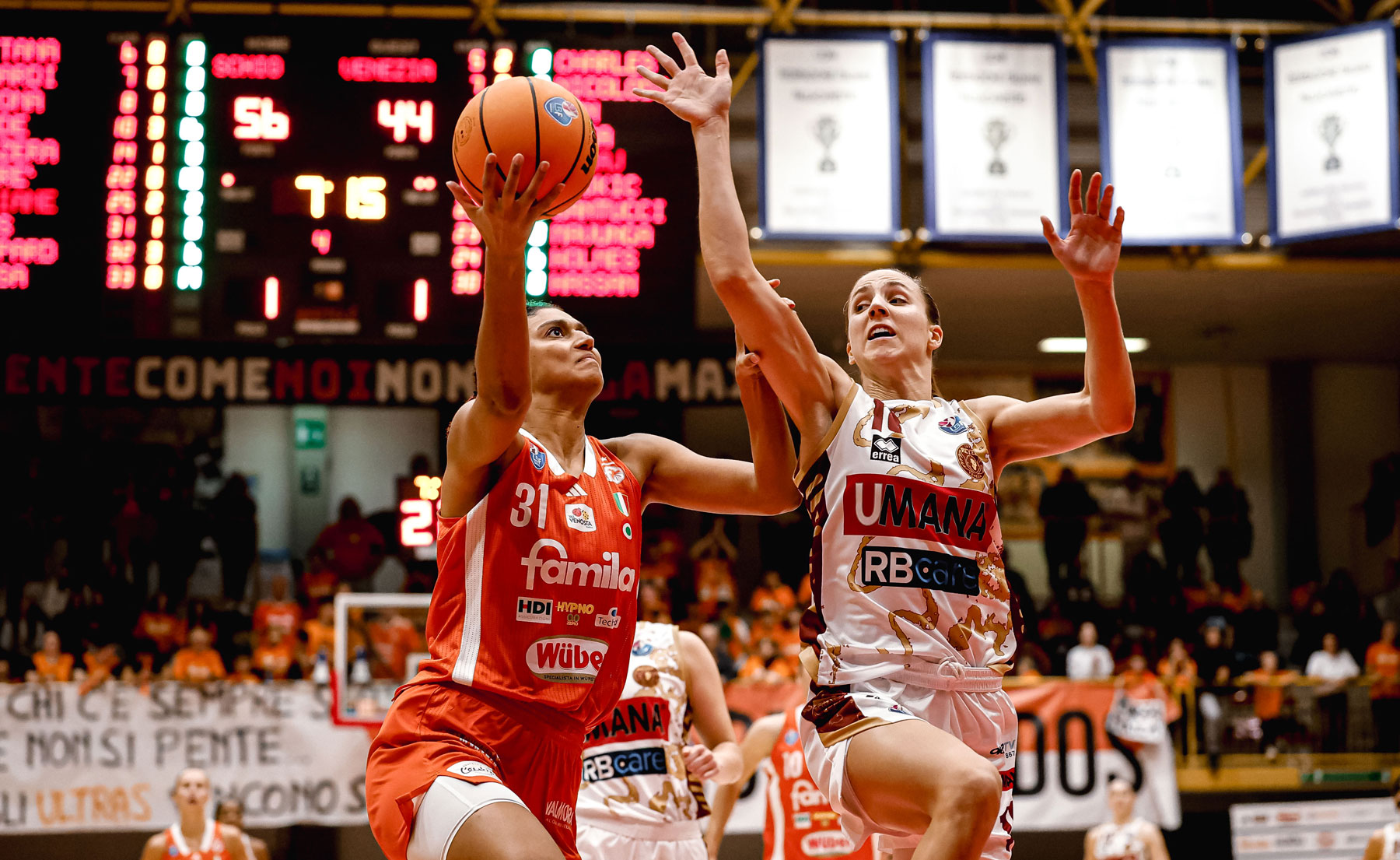 Sarà il settimo confronto stagionale tra i due club: 4 le vittorie orange con il trionfo in Supercoppa, nei due match di campionato e in gara 1 dei play-in di Eurolega; le orogranata invece hanno vinto gara 2 e 3 dei play-in di Eurolega. Prosegue Sottana: “Il fatto che sia un derby e ci sia questa grande rivalità fa sì che da entrambe le parti si trovino energie e motivazioni ulteriori in ogni occasione. La Reyer è una squadra molto preparata: noi con il cambio di allenatore abbiamo mescolato le carte in tavola, vedremo ovviamente con quale risultato. L’eliminazione dalle Final Six è stata dolorosa ma utile per analizzare i nostri errori e capire cosa ci serve per tornare a vincere contro l’Umana”.