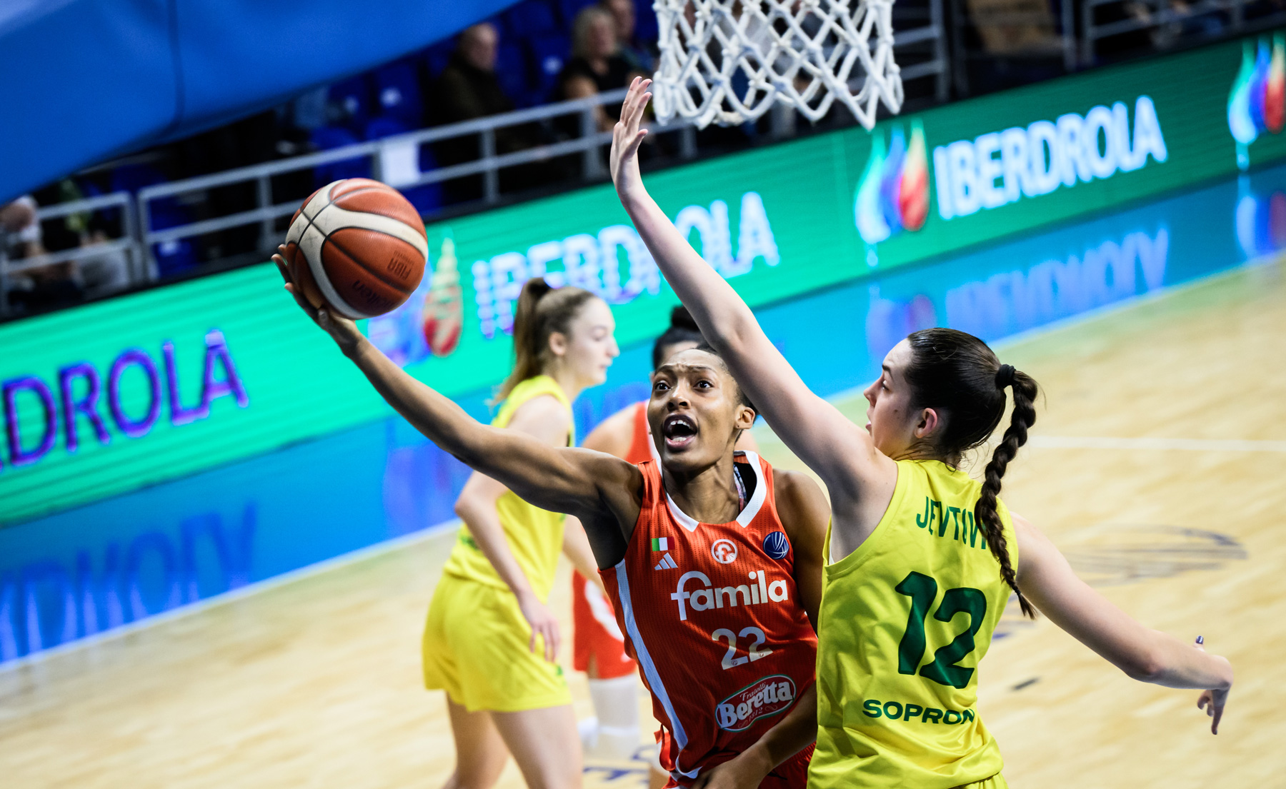 Wallakc e Jevtovic accorciano sensibilmente le distanze, e poi Muhl con due canestri dà a Sopron il primo vantaggio grazie anche ad una difesa magiara molto spigolosa che gli arbitri giudicano spesso regolare. Due triple dagli angoli opposti di Wallack e Brooks consegnano alle padrone di casa il massimo vantaggio sul 36-28 a metà periodo. Laksa sblocca il Beretta dall’arco, Conde accorcia e Steinberga sorpassa ma, proprio nel finale, Papp firma il controsorpasso in contropiede: 38-37.