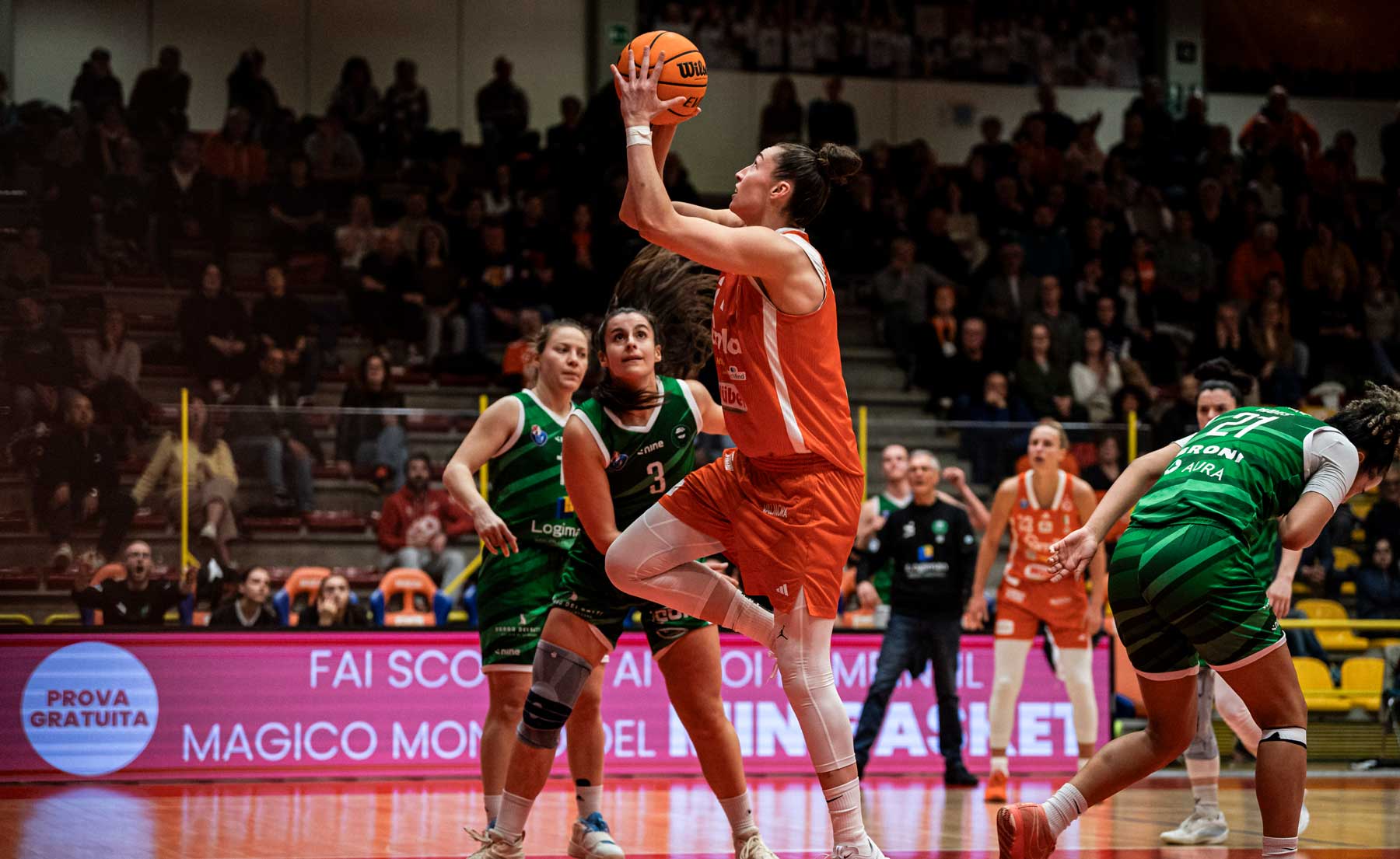 Cvitkovic impatta subito dall’angolo mentre Laksa e Archer si ribattono colpo su colpo prima che Zanardi e Conde trovino due triple in serie che, però, non cambiano l’inerzia. Anzi, la Logiman si ricompatta e con il jumper di Crippa trova il meno uno al 27’. Proprio nel momento di massima difficoltà le orange trovano un minibreak di 6-2 con due appoggi di Shepard e i liberi di Zandalasini per chiudere la terza frazione sul 51-46.
