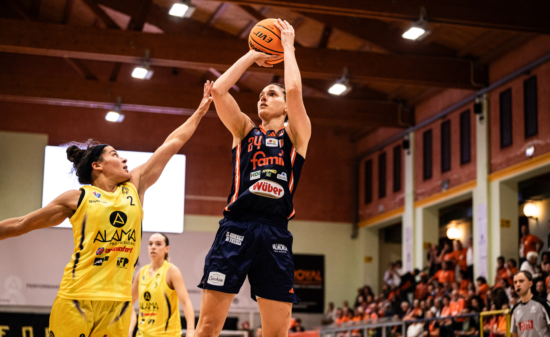 In un Palalupe caldissimo che accoglie le proprie giocatrici per la prima partita in casa della stagione, il Famila Wuber riesce ad espugnare il parquet padovano per 58-77. Punteggio che racconta solo in parte una partita molto intensa che ha avuto una leggera flessione solo nel secondo quarto quando Schio si è creato quel margine decisivo poi per vincere la partita. L’Alama ha messo in campo tutta l’intensità che aveva a disposizione ma il Famila ha risposto con talento e tanta profondità: tutte a segno le orange tranne Zanardi con l’high di una Shepard imprendibile sotto canestro. Coach LaPena ha tenuto a riposo Conde che aveva messo nelle gambe tanti minuti nelle ultime uscite.