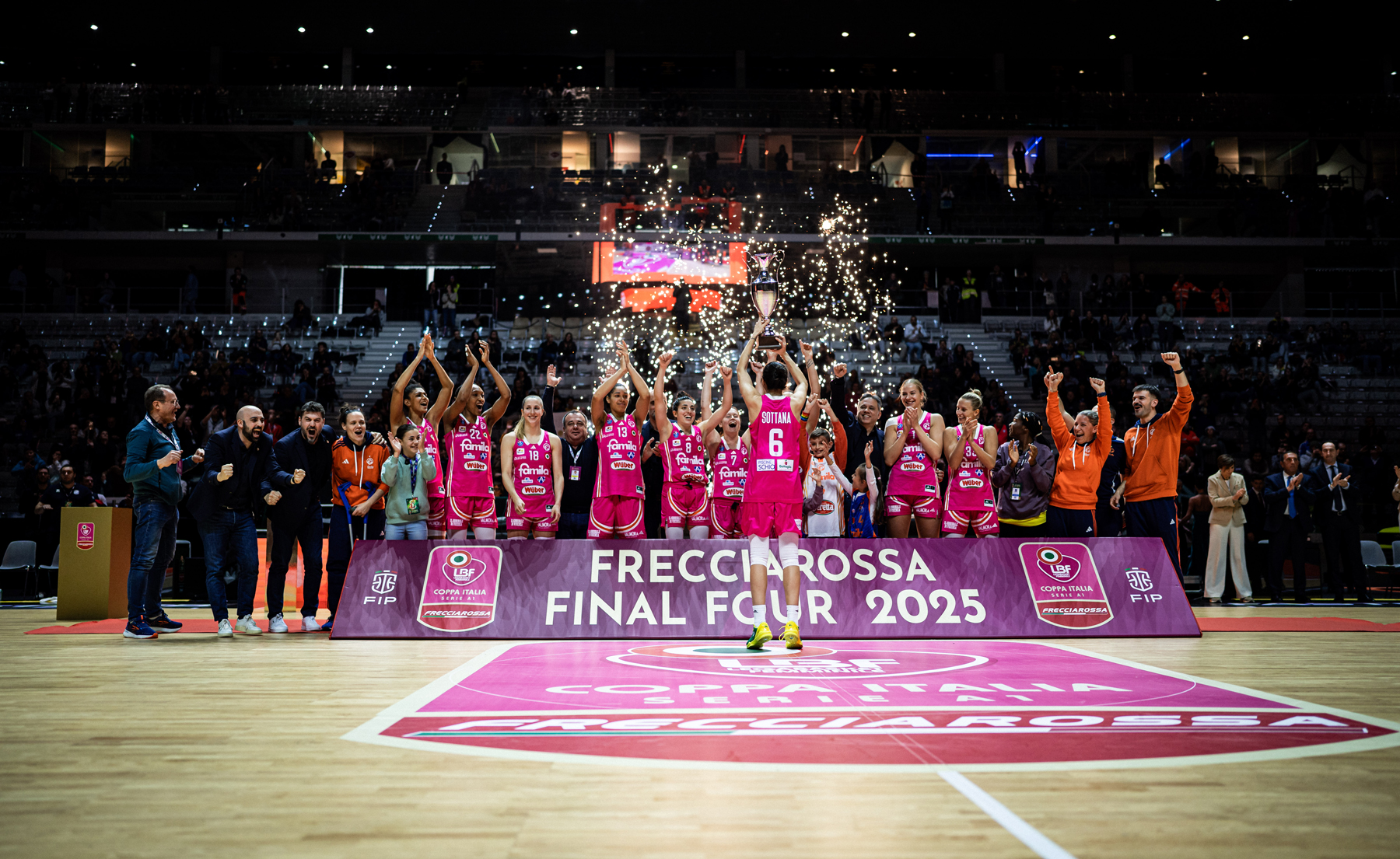 All’Inalpi Arena di Torino il Famila Wuber vince la sedicesima Coppa Italia della sua storia, la sesta consecutiva, superando in finale l’Umana Reyer 45-54 in una partita tesa e forse poco spettacolare ma comunque intensa e vibrante fino alla fine. Straordinarie le prestazioni di Dojkic e Andrè (MVP della finale), le top scorer con 17 punti a testa, determinanti in una serata in cui i terminali più prolifici delle orange hanno fatto più fatica (11 punti in tre per Juhasz, Salaun e Laksa). Decisivo anche lo sforzo difensivo di tutto il collettivo che ha tenuto sotto i 50 punti una formazione altissimo livello come Venezia.