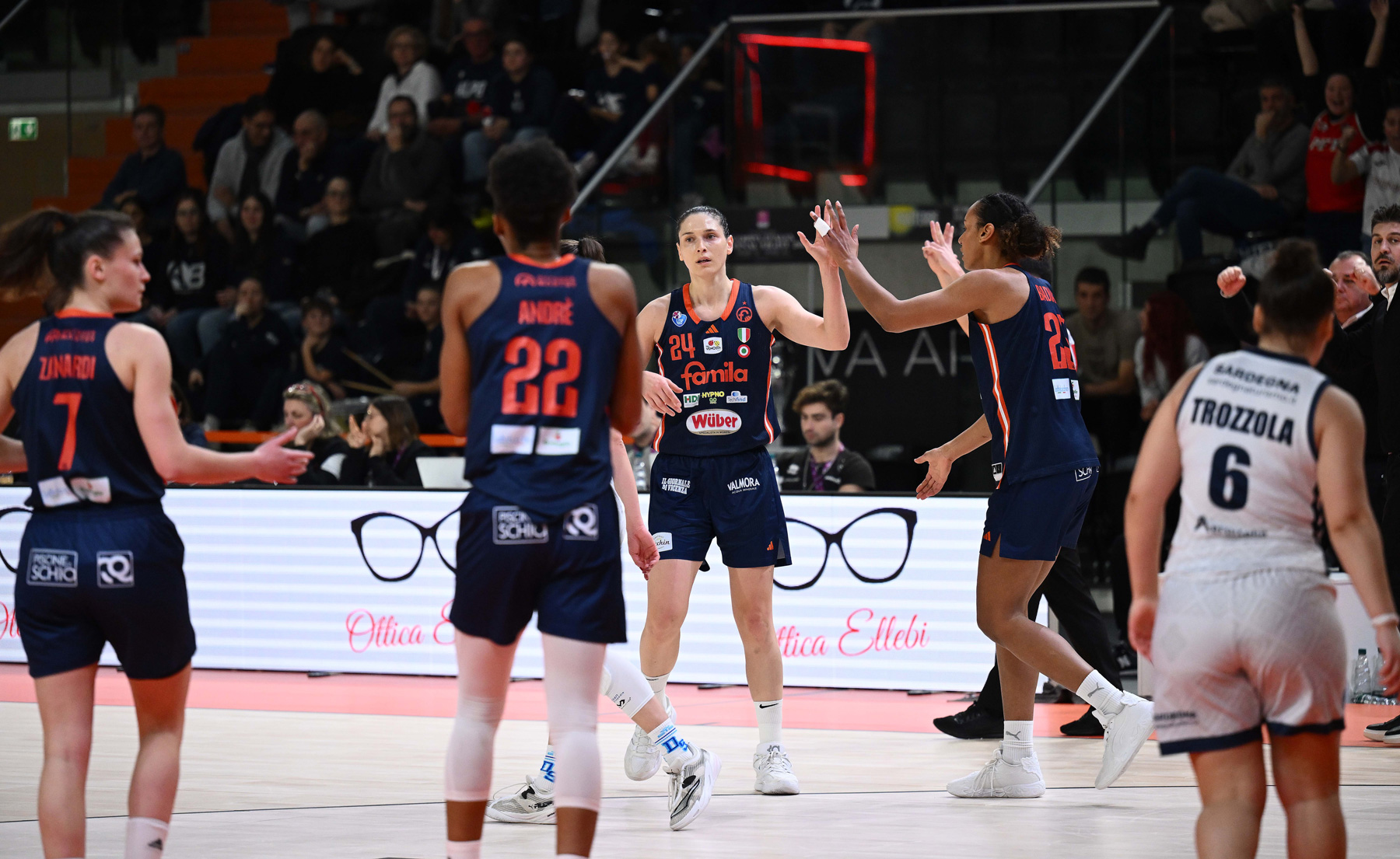 Famila Wuber Schio: Sottana 8, Zanardi 2, Verona 14, Conde ne, Andrè 7, Zandalasini 8, Badiane 3, Keys 7, Shepard 21, Laksa 18
