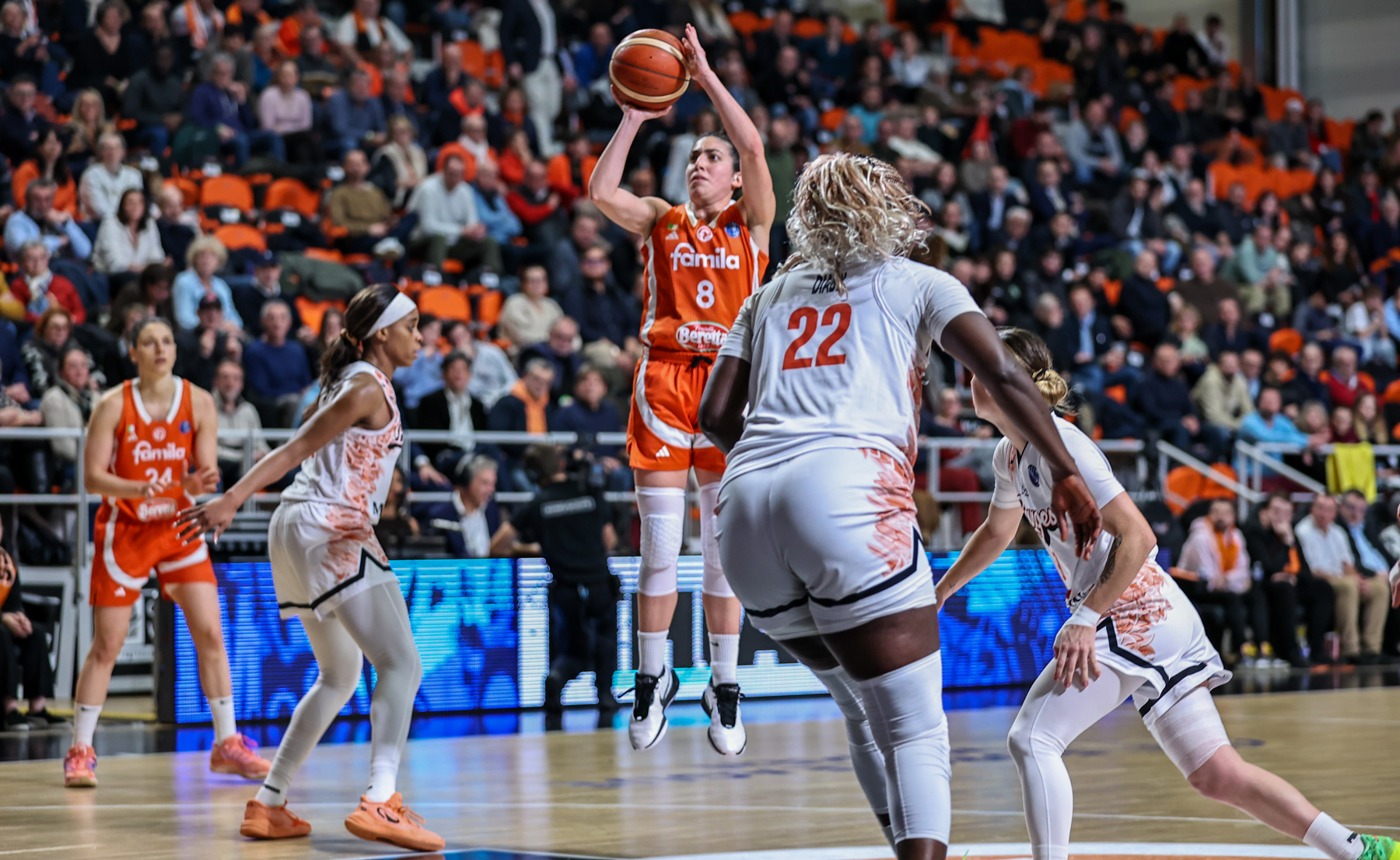 6 vittorie e 5 sconfitte (stesso record del Beretta) che – su 5 partite giocate in questa seconda parte di stagione – ne ha perse 3, di cui una estremamente sanguinosa in casa del già eliminato Carolo. Bourges è una delle migliori formazioni a rimbalzo (quasi 6 in più catturati a partita rispetto al Famila) ma insegue le orange praticamente a tutte le altre voci statistiche.